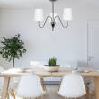 LAMPA WISZĄCA SUFITOWA ŻYRANDOL GLAMOUR DO JADALNI BIAŁE ABAŻURY 3xE27 KRIOS 7-682