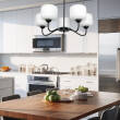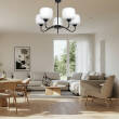 LAMPA WISZĄCA SUFITOWA ŻYRANDOL DO SALONU LOFT BIAŁE KLOSZE CZARNA 5xE27 15-400 BELINDA