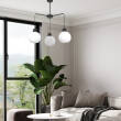 LAMPA WISZĄCA SUFITOWA ŻYRANDOL SYPIALNIA LOFT BIAŁE KULE CZARNA 3xE27 15-272 BETIS